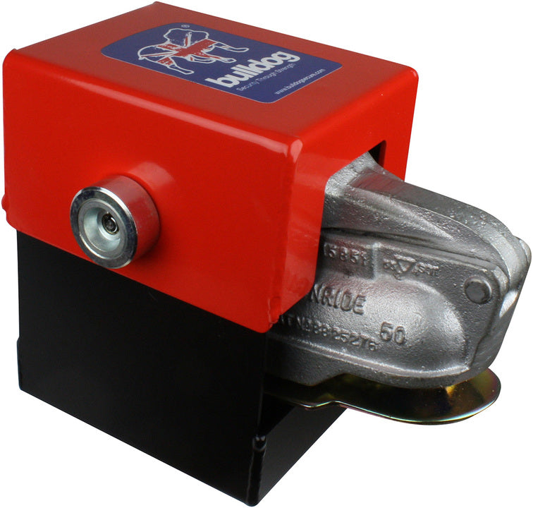This is a versitile lock which will fit hitched, unhitched or in conjuntion with a Bulldog lock post. (Not to be used when in transit). High security drill and pick resistant lock and complete with a highly visible red powder coated finish.